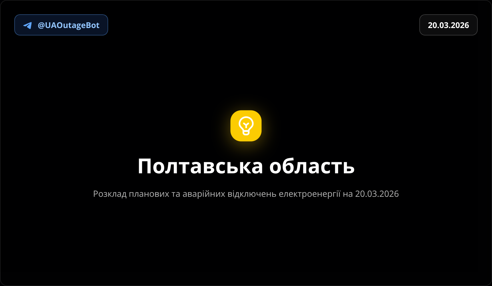 Розклад планових та аварійних відключень електроенергії Полтавська область на 20.03.2026. Усі черги та актуальні дані для планування дня.