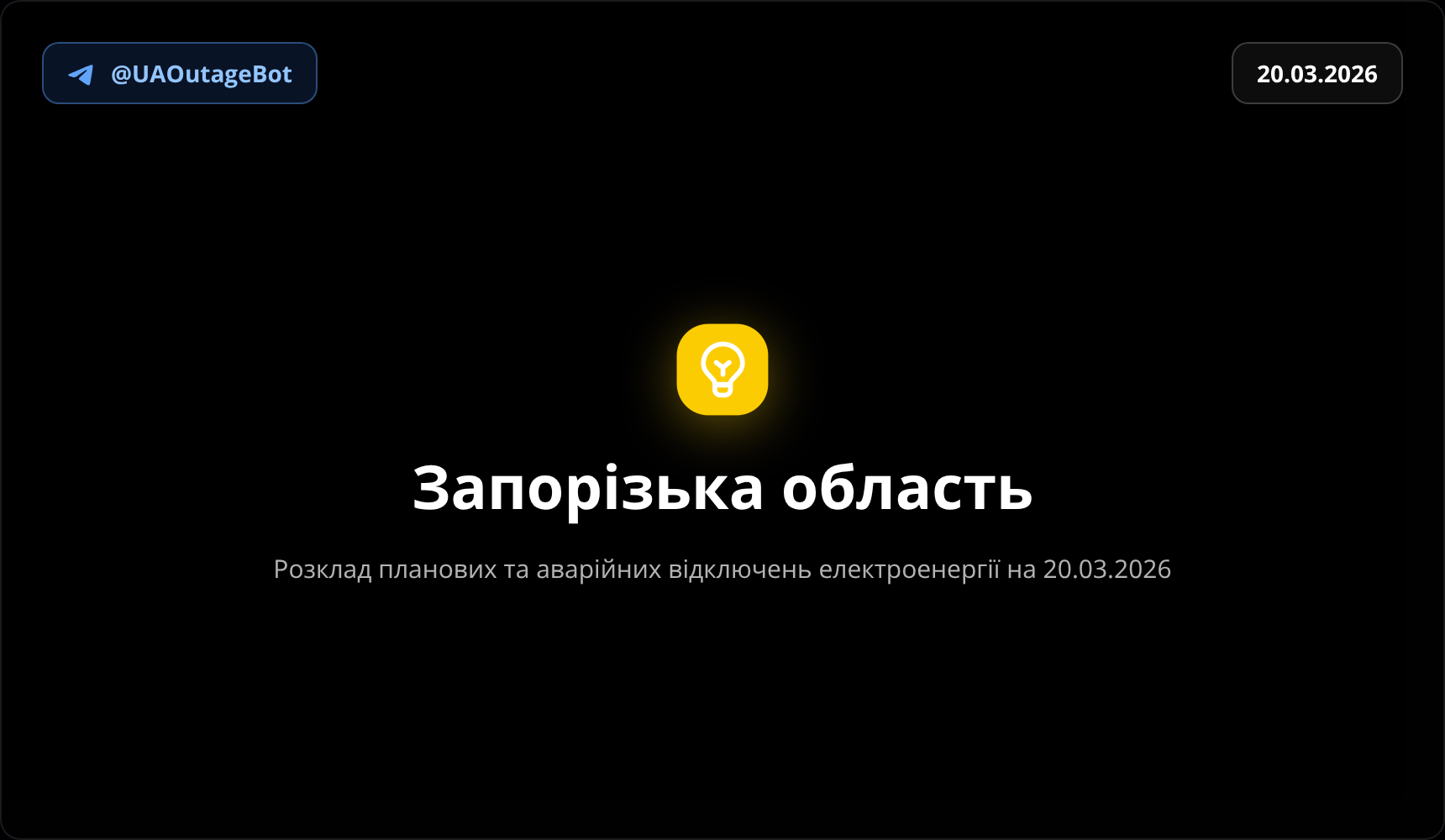 Розклад планових та аварійних відключень електроенергії Запорізька область на 20.03.2026. Усі черги та актуальні дані для планування дня.
