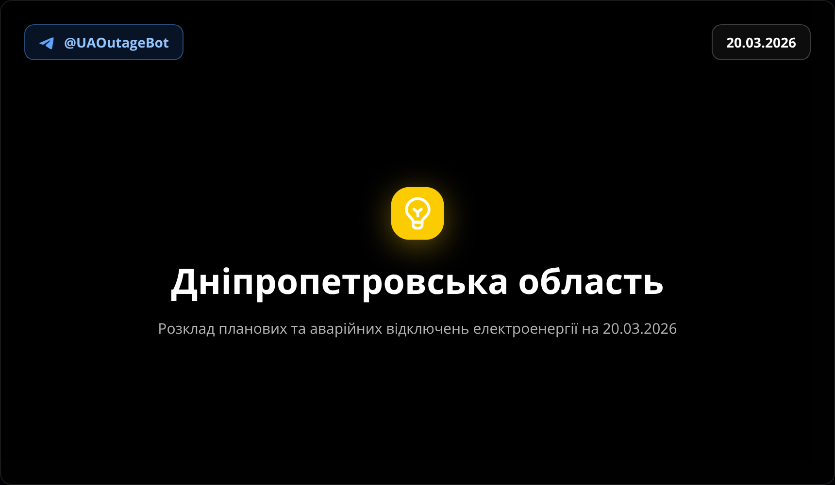 Розклад планових та аварійних відключень електроенергії Дніпропетровська область на 20.03.2026. Усі черги та актуальні дані для планування дня.