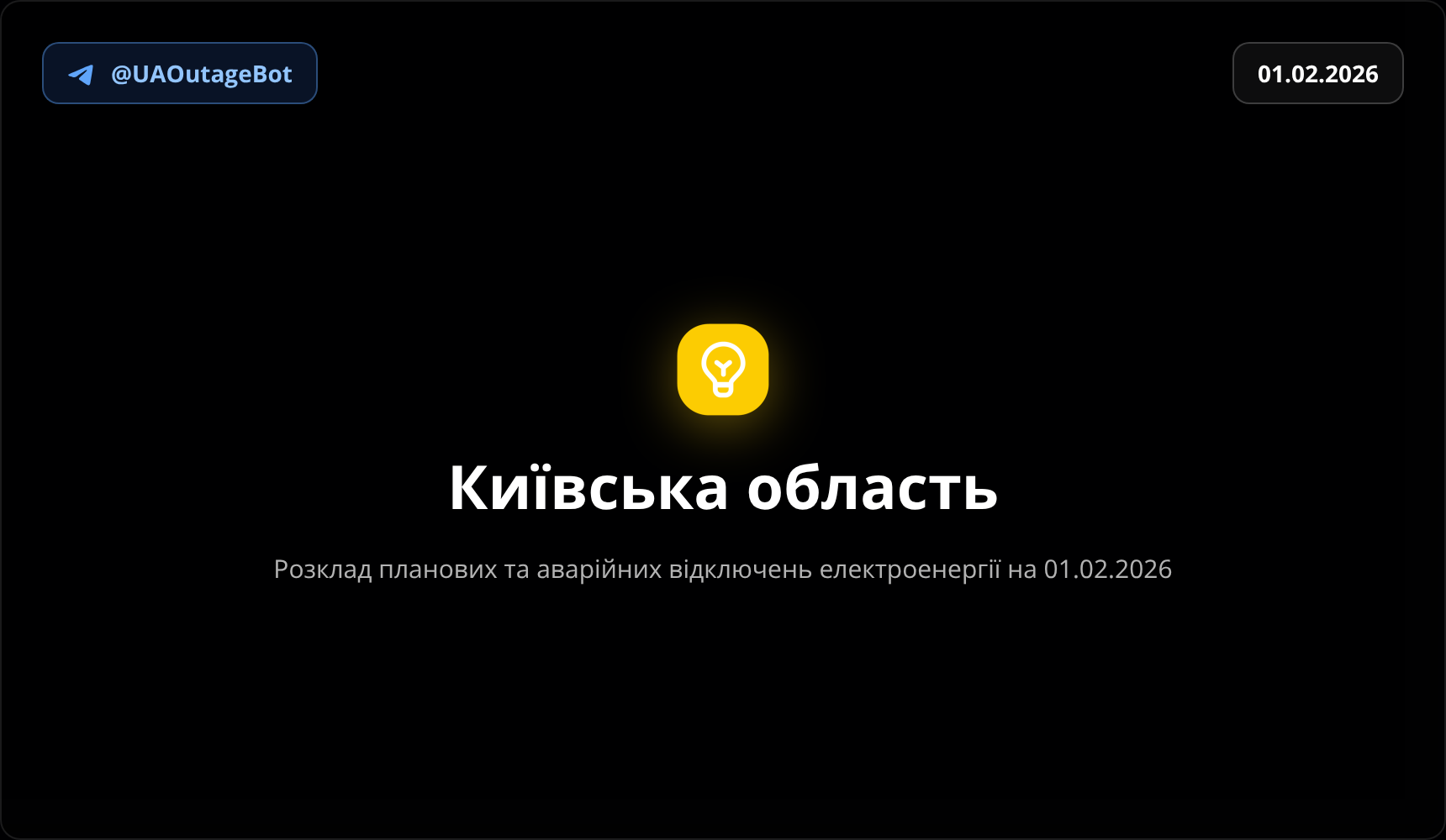 Розклад планових та аварійних відключень електроенергії Київська область на 01.02.2026. Усі черги та актуальні дані для планування дня.