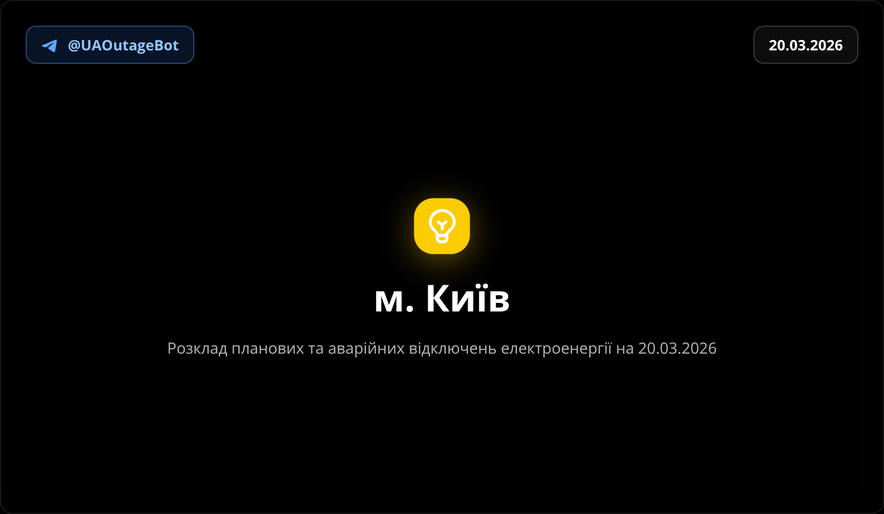 Розклад планових та аварійних відключень електроенергії м. Київ на 20.03.2026. Усі черги та актуальні дані для планування дня.